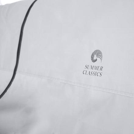 Brand Summer Classics Color family Gray Country of origin USA Contract viable Yes Finish family Gray Material Solution-Dyed Polyester with Vinyl Backing Stain resistant Yes Uv resistant Yes Water resistant Yes
