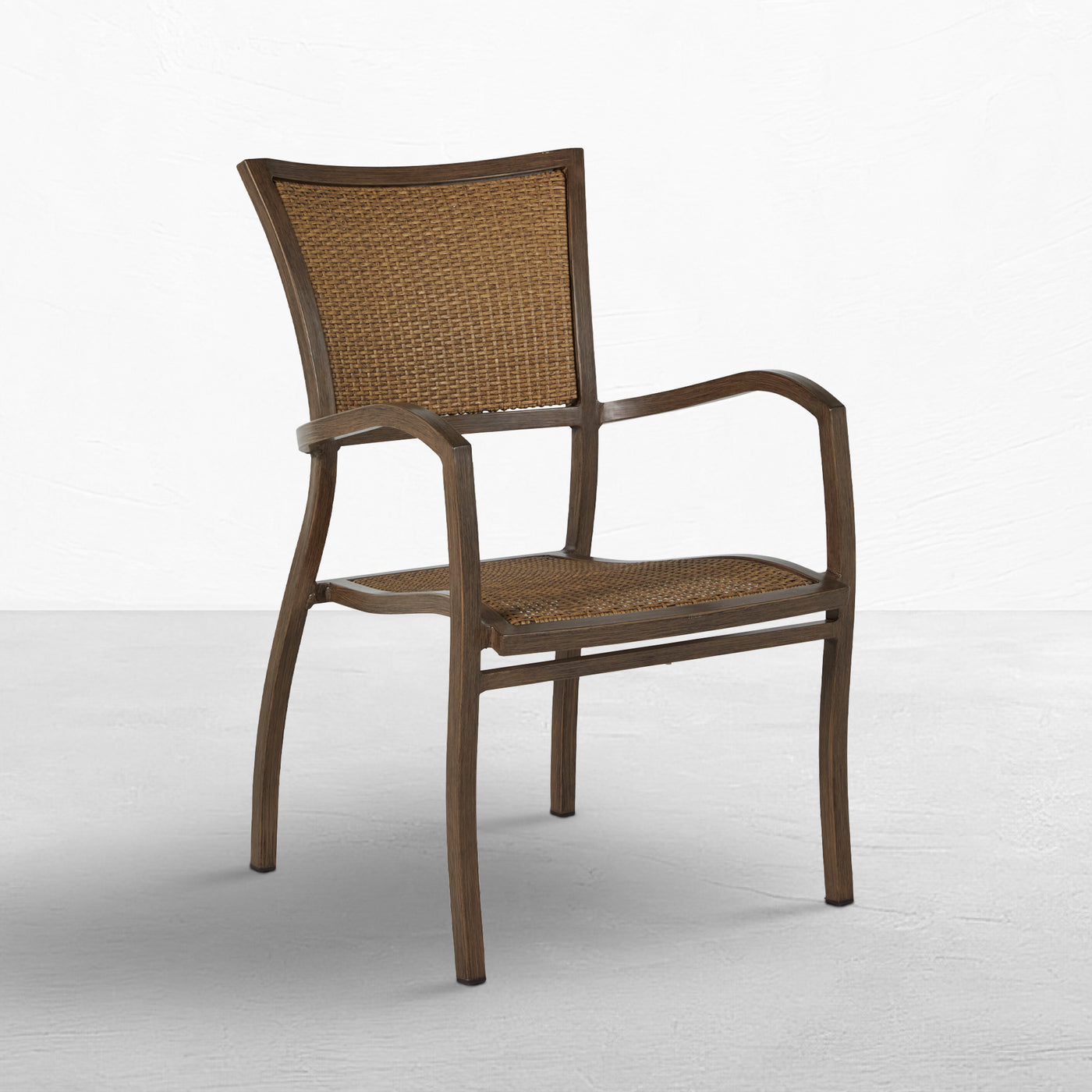 Delicate yet durable, the stackable outdoor Aire Arm Chair features an exceptionally weather-resistant woven seat and back crafted from N-Dura™ resin wicker for long-lasting beauty and durability. The hand-welded wrought aluminum frame highlights the graceful curves of the armrests and seat. Featuring a stackable design, this dining chair offers maximum convenience, letting you easily store extra chairs when they’re not needed. This item is designed to be enjoyed either with or without a cushion. Please designate your choice in the below "Select a Cushion" dropdown.