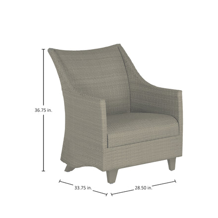 - Fully upholstered in sophisticated N-Dura resin wicker for durability with a refined woven aesthetic