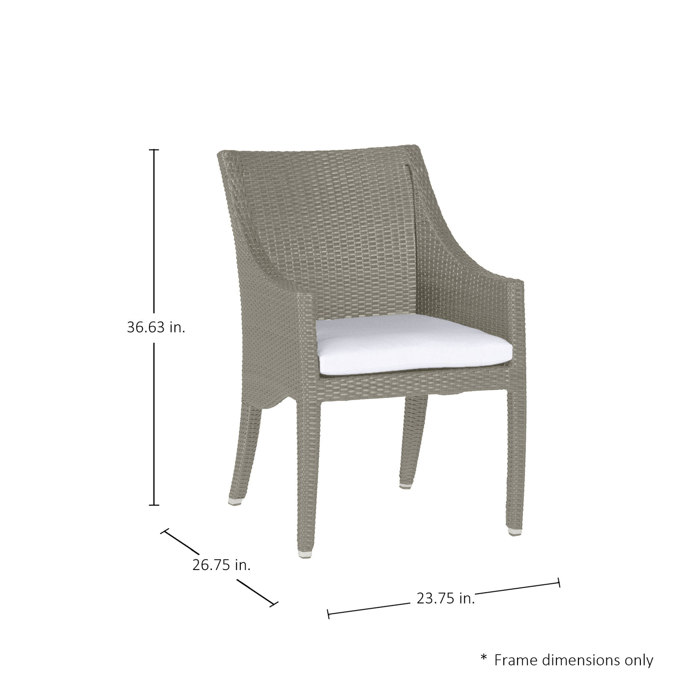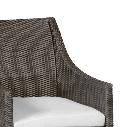 The Athena Arm Chair brings timeless beauty to outdoor spaces. This wicker patio chair features an aluminum frame completely covered by weather-resistant N-Dura™ resin wicker for durability and strength. A removable seat pan and anodized aluminum feet help ensure long-lasting good looks and enjoyment.