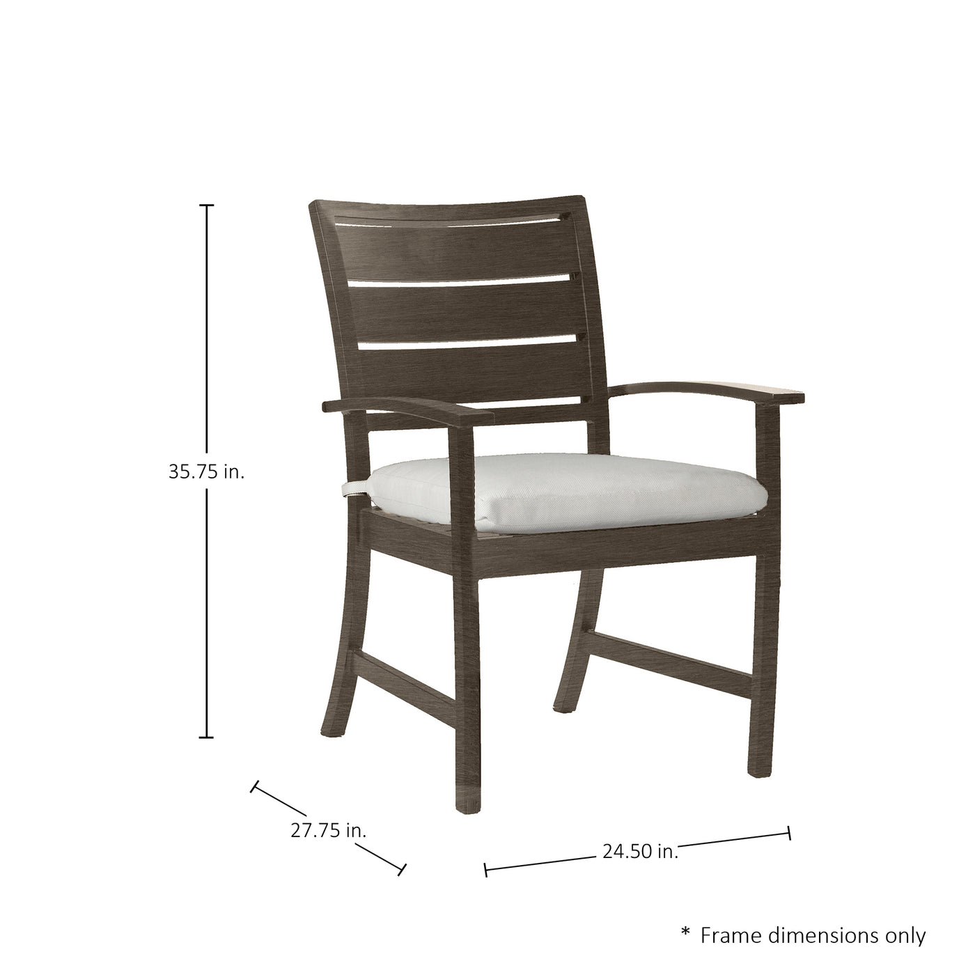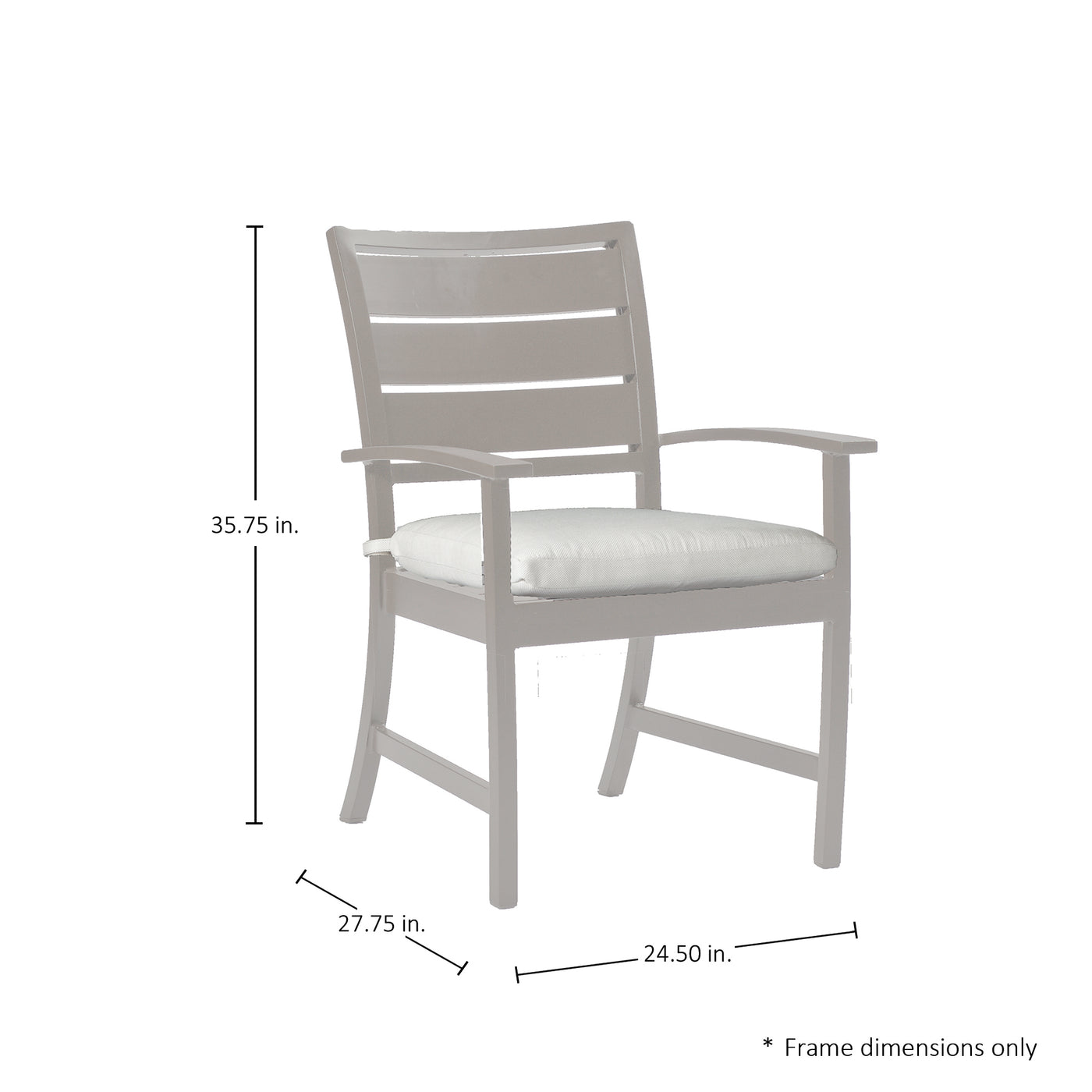 The Charleston Arm Chair blends a classic wide plank coastal furniture design with updated proportions and materials capable of withstanding environmental elements, including harsh saltwater environments. Crafted from durable wrought aluminum with a powder-coated finish, this armchair is built to last for years of enjoyment. This item is designed to be enjoyed either with or without a cushion. Please designate your choice in the below "Select a Cushion" dropdown.