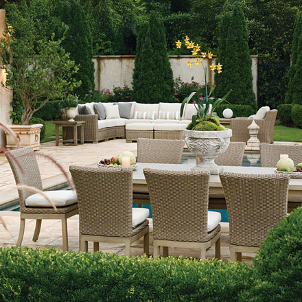 - Crafted from handwoven N-Dura resin wicker over heavy gauge aluminum for exceptional durability and weather resistance