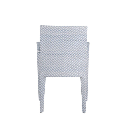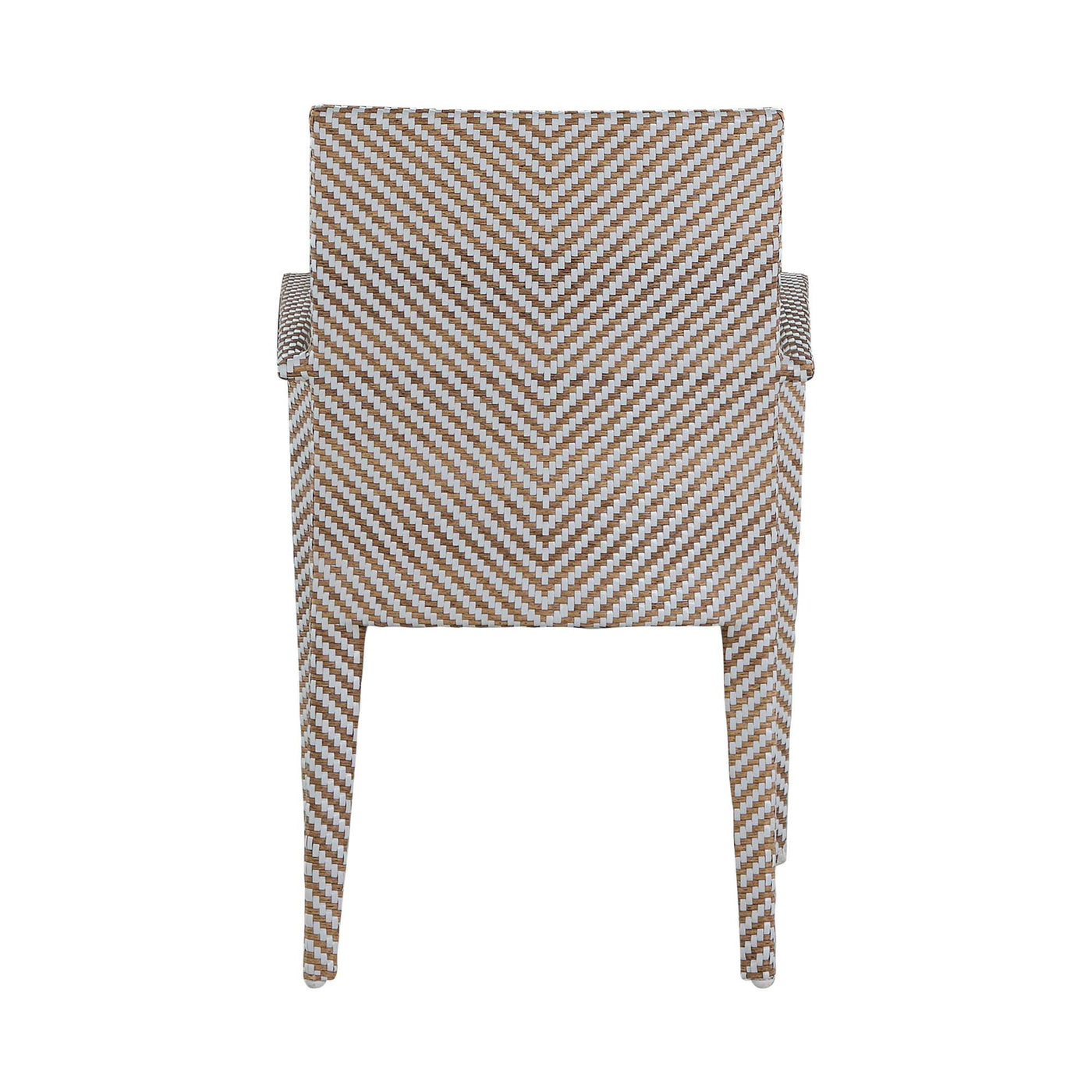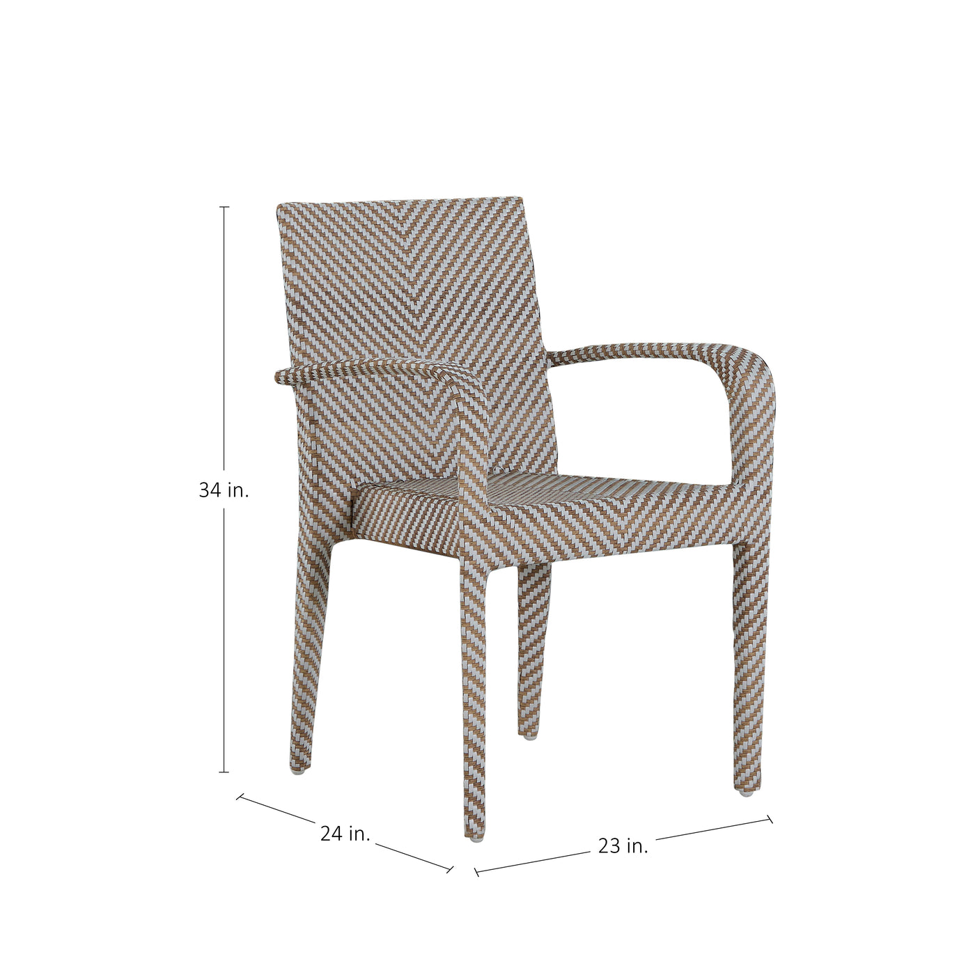 Designed with convenience in mind, the Bari Stacking Arm Chair is perfect for flexible outdoor dining. Its stackable design allows for easy storage, making it ideal for entertaining, events, or everyday use in compact spaces. Wrapped in the collection’s signature two-tone chevron N-Dura™ resin wicker, this chair offers lasting durability and a refined look. Gently curved arms and a supportive silhouette ensure comfort, while its weather-resistant frame stands up to the elements with ease.
