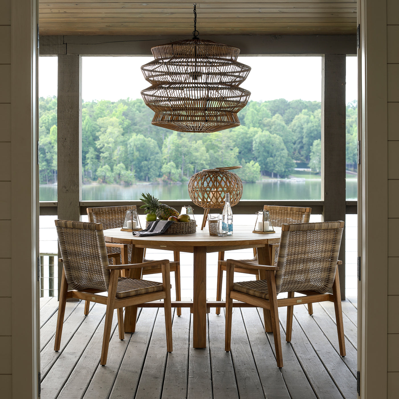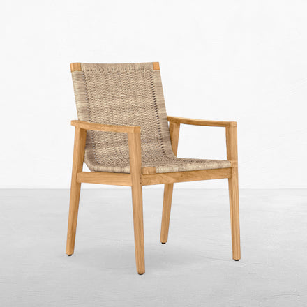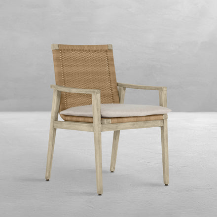 Pointe Wicker Teak Outdoor Dining Arm Chair