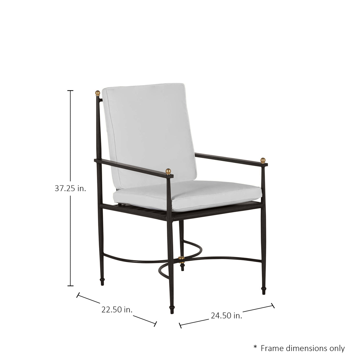 The Roma Arm Chair is a testament to the enduring elegance of Italian design. Its sleek lines and wrought aluminum construction are a nod to the minimalist beauty found in Italy's rich design heritage. Accents of gold embedded within the frame offer a touch of opulence, reminiscent of Italy's storied past. As an outdoor dining chair, it not only promises durability and comfort with its plush cushions but also brings a sophisticated, continental charm to alfresco dining.