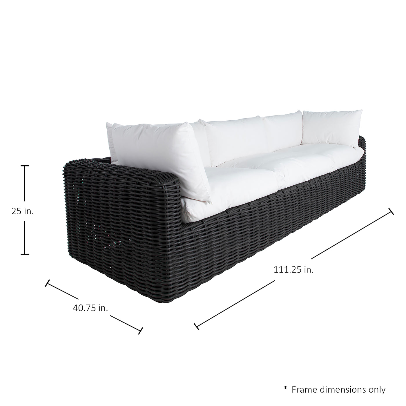 The Montecito Sofa features oversized proportions for the ultimate in luxurious seating. Inspired by the charm of handwoven basketry, the large wicker weave offers a relaxed look and feel to the low, linear profile of this outdoor sofa. Made for years of enjoyment and beauty with highly weather- and UV-resistant N-Duraâ„¢ resin wicker for a worry-free experience with the look of natural materials.