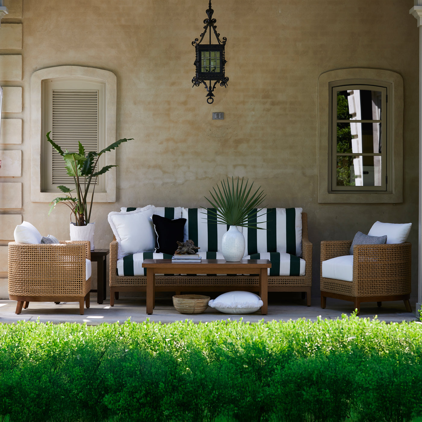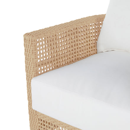 The Peninsula collections exquisite open weave and sophisticated modern design bring a light and airy feel to alfresco spaces. The Peninsula Barrel Chairs high back cushions and deep seating create an impossibly elegant place to lounge.