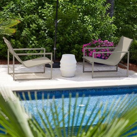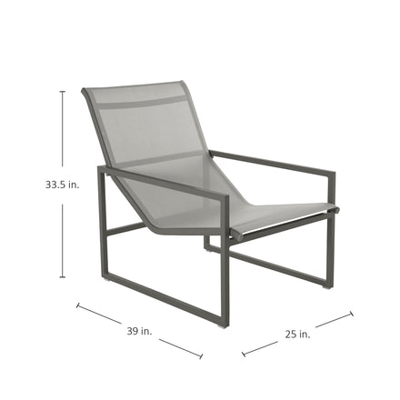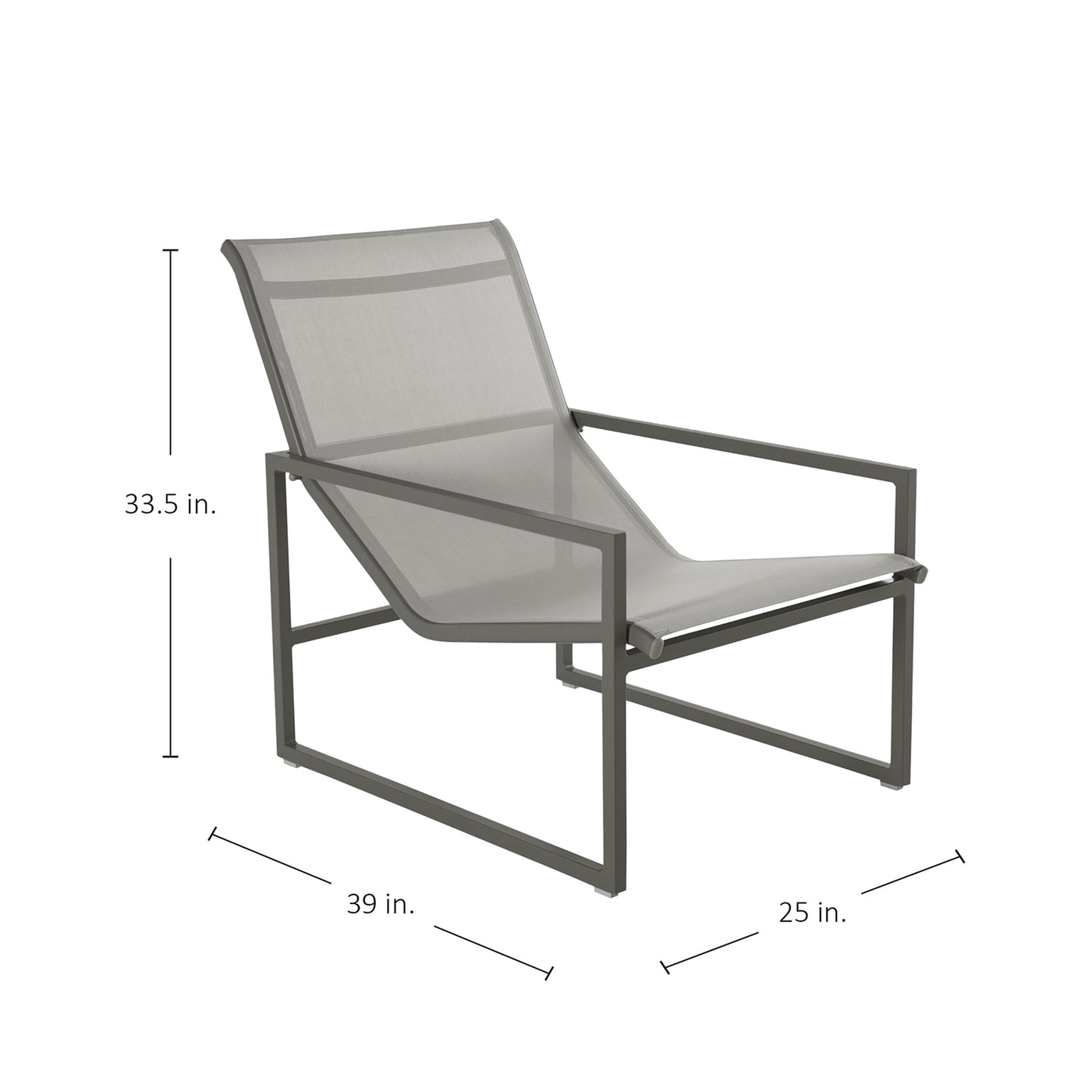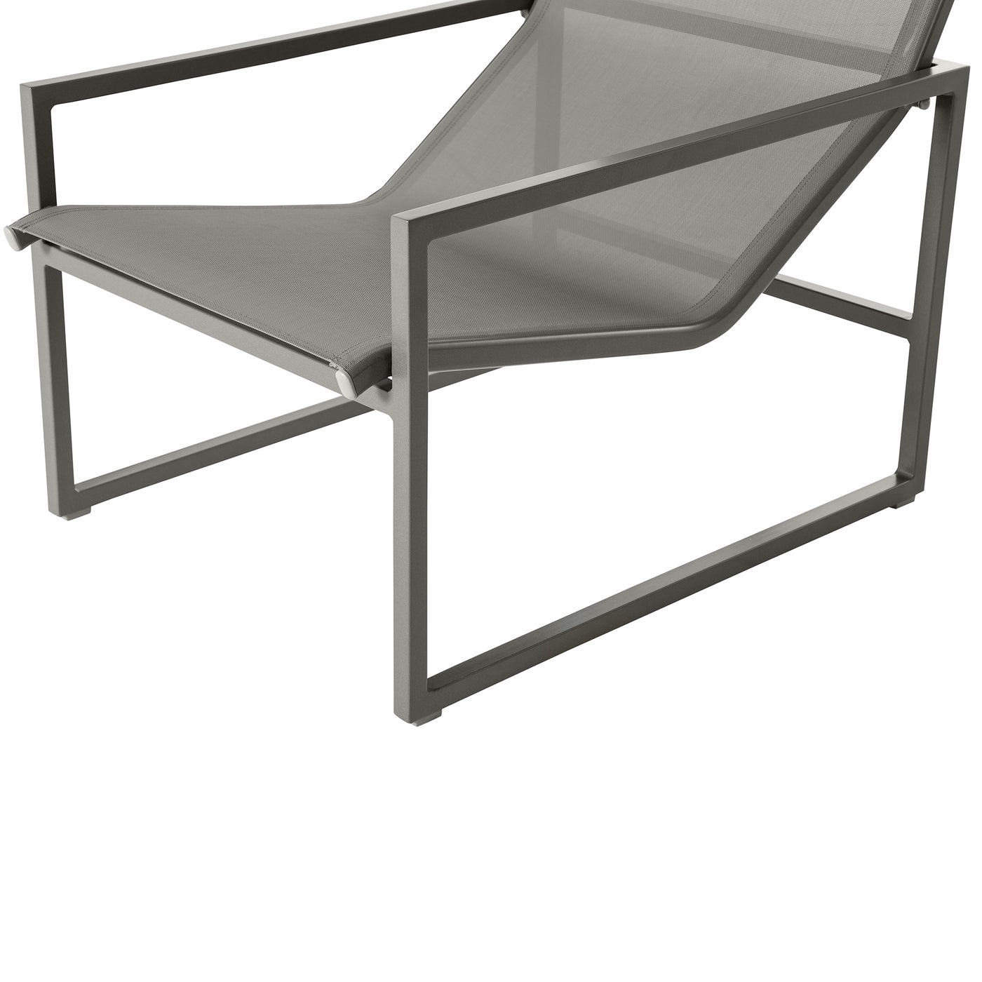 The Serenata Easy Sling Lounge exudes a sleek, modern design characterized by its minimalist lines and open, airy structure. Crafted from premium wrought aluminum, the frame features a triple-layer coating—including powder, dry, and polyurethane clear coats—to provide ultimate weather resistance, preventing corrosion, fading, and wear. This ensures the lounge chair is both stylish and durable, capable of withstanding harsh outdoor conditions. The seat and backrest are made from Batyline® outdoor performance sling, known for its quick-dry technology, which offers comfort soon after rain. This high-performance sling has double the durability of standard weaves due to a higher pick count, and it provides superior UV and mold resistance, as well as being eco-friendly. The lounge chair's ergonomic design, with its angled seat and supportive backrest, makes it perfect for relaxation in any outdoor setting.