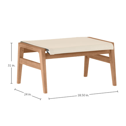 The Coast Teak Ottoman is the perfect accessory piece to partner with other items in the Coast Teak Collection from Summer Classics. Its simple styling and solid teak construction ensure years of beauty and worry-free durability. Constructed using plantation-grown teak, sourced exclusively from FSC-certified Indonesian plantations committed to environmental sustainability, and Batyline™? outdoor performance sling, this ottoman can be used for years to come.