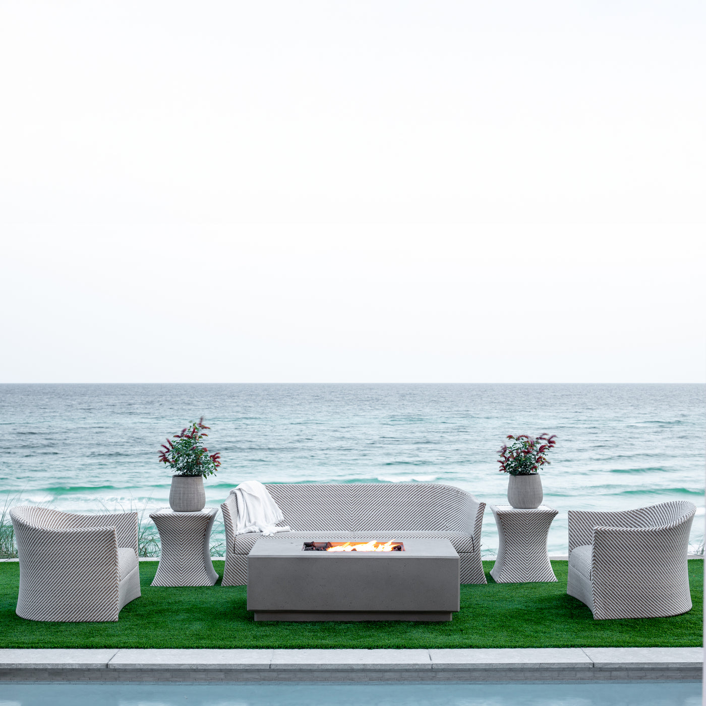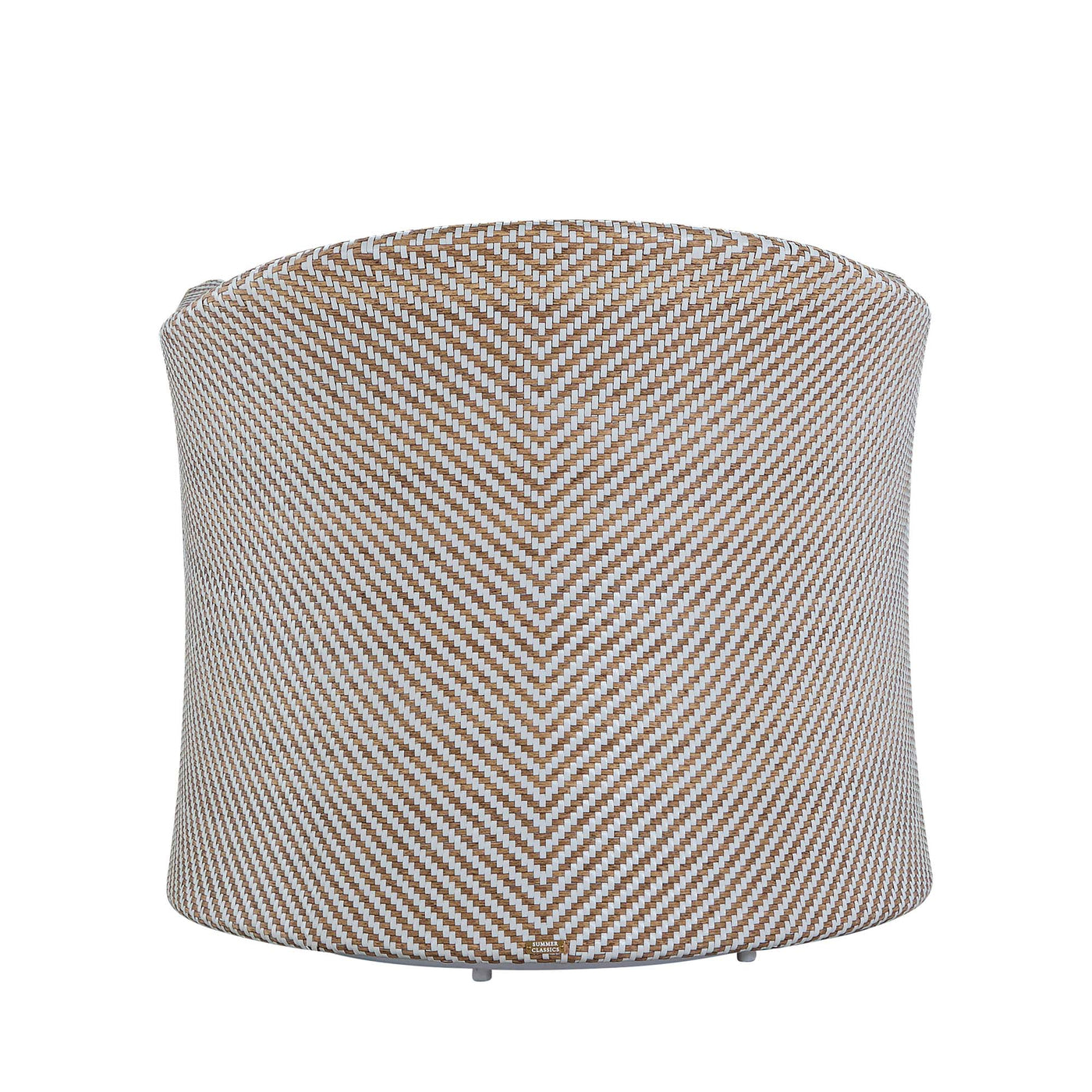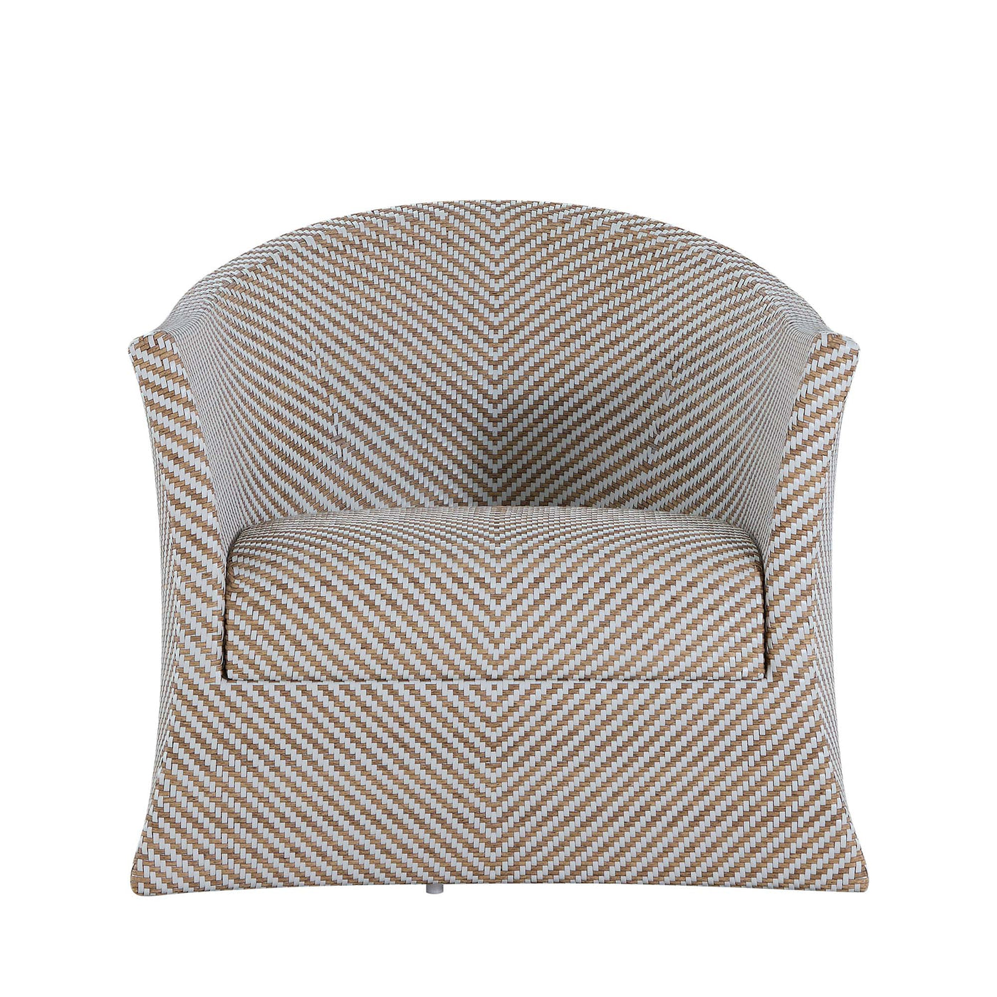 The Bari Swivel Lounge pairs timeless elegance with smooth, functional motion—rotating a full 360 degrees for dynamic outdoor relaxation. Fully wrapped in the collection’s signature two-tone chevron N-Dura™ resin wicker, it brings durability and visual texture to any setting. Designed for poolside or humid environments, it features a built-in water-resistant reticulated foam cushion for plush comfort without the need for traditional removable cushions. Its curved silhouette and generous proportions offer a stylish, low-maintenance retreat ideal for both lounging and conversation.