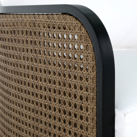 - Crafted with a wrought aluminum frame and handwoven N-Dura™ resin wicker.
