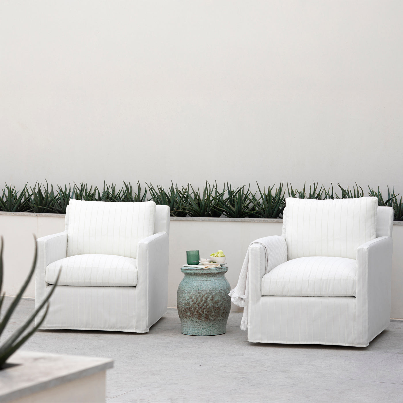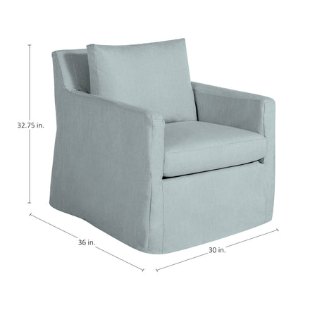 Brand Summer Classics Collection name SC Tailored Country of origin USA Contract viable Yes Fade resistant Yes Hardware finish Stainless Steel Inner frame material Plywood Motion type Swivel Number of arms 2 Requires cushion No Seat back type Fixed Seating capacity 1 Slipcovered Yes Stain resistant Yes Upholstered Yes Uv resistant Yes Water resistant Yes