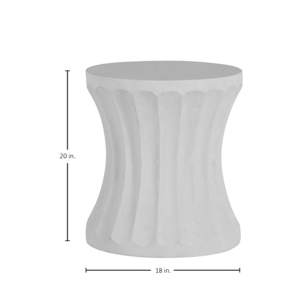 The Gannet Side Table is designed to bring a dynamic visual interest to either indoor or outdoor settings. Its fluted design, reminiscent of classical columns, adds a touch of architectural elegance to its surroundings. Cast from a durable stone composite, it boasts a robustness that can withstand the elements while maintaining its pristine natural white or aged stone grey finish. This versatile piece can enhance any space with its timeless beauty and exceptional craftsmanship.