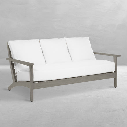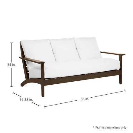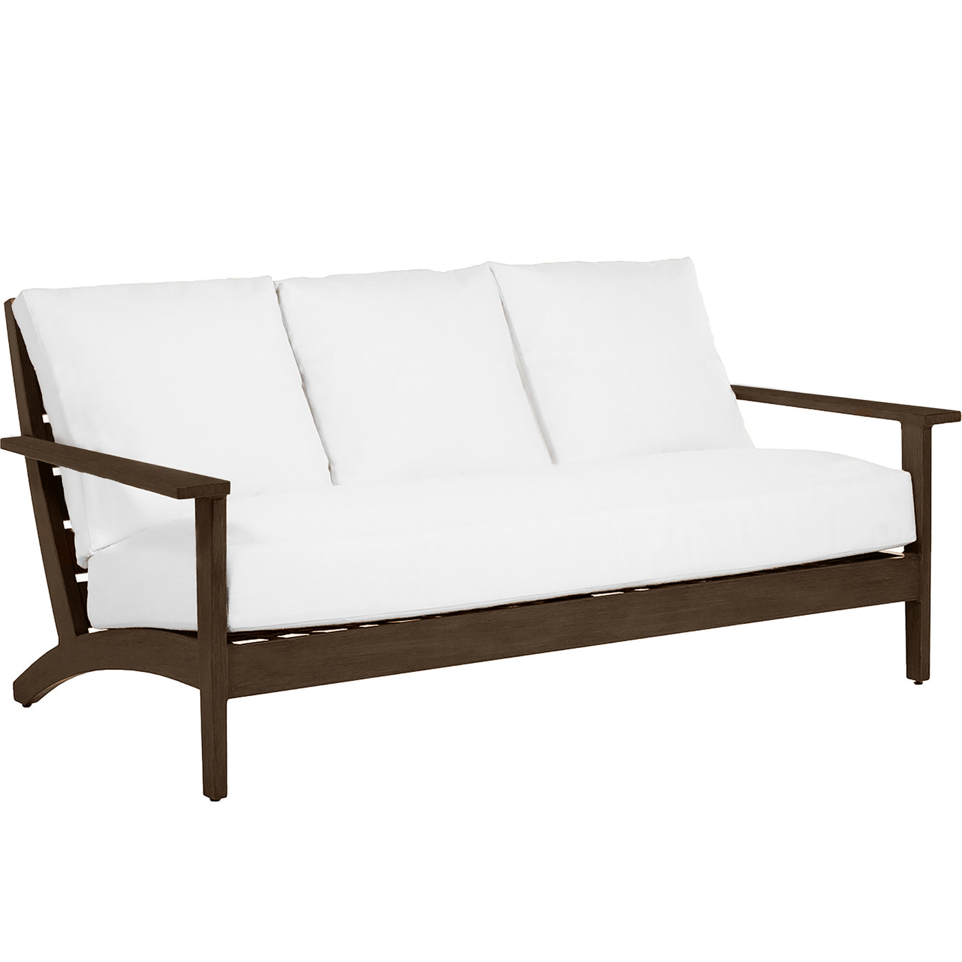 The Kennebunkport Sofa is an update of a circa 1999 Summer Classics favorite. This sofa blends timeless design with modern materials. Its wrought aluminum construction ensures durability, while the architectural-grade powder-coated finish offers a lasting hue resistant to the elements. Comfort meets style with plush cushions, perfect for any outdoor setting. This versatile piece is designed to mix with other collections, providing a sophisticated and enduring addition to your space.