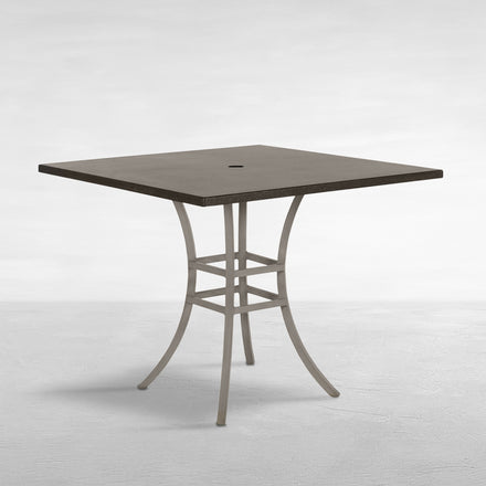 The Cort Aluminum Counter Base merges functional design with an aesthetic appeal for outdoor spaces. Its wrought aluminum construction ensures both stability and longevity. Designed to complement various tabletop styles from the Summer Classics collection, this counter-height base pairs seamlessly with counter-height stools for a casual dining or lounge area. Suitable for tabletops up to 48 inches, it provides the flexibility to add an umbrella and base for shaded comfort. Each leg is equipped with adjustable feet, making it easy to ensure stability on uneven surfaces.