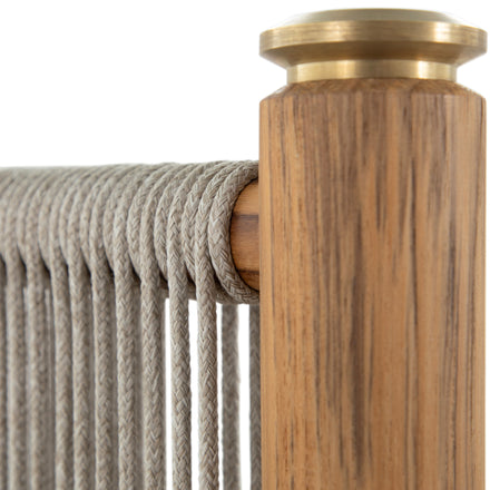 - Durable teak frame and vertical olefin rope for strength, texture, and outdoor durability