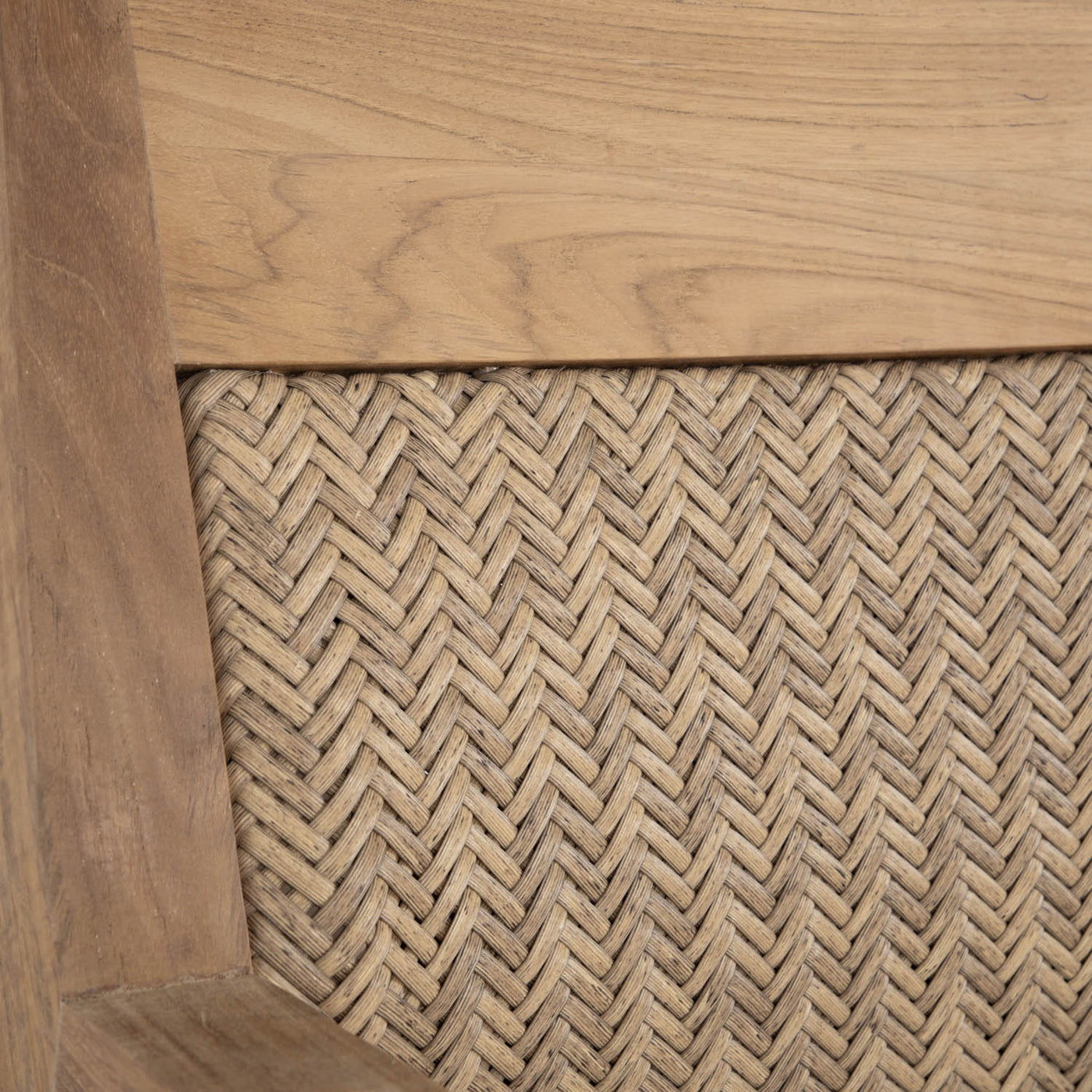 - Combines natural teak warmth with woven texture for a refined, timeless outdoor aesthetic