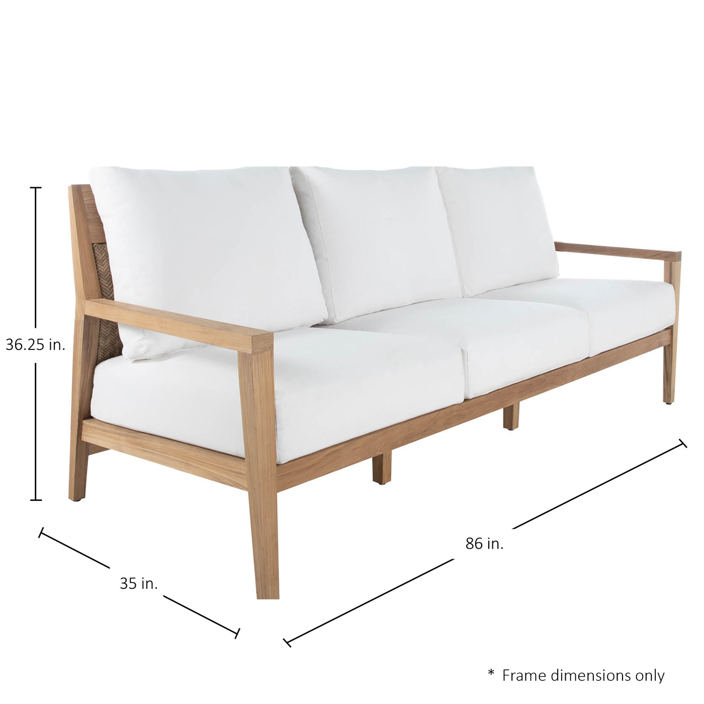 Our Savannah Teak Collection is where the warmth of natural teak meets the resilience of N-Duraâ„¢ resin wicker. This Savannah Sofa is sculpted for those who appreciate the timeless beauty of teak, enhanced with UV-resistant wicker for enduring allure. Each handcrafted piece adds a layer of exclusivity and unparalleled quality. Perfect for outdoor sanctuaries, it combines the organic charm of wood with modern durability, offering a sanctuary of style and tranquility that stands the test of time. Please note, that due to its high-quality center cut, and natural oils, teak will age gracefully without the help of cleaners and protectors. Our exclusive N-Duraâ„¢ Ultra Resin Wicker sets our outdoor furniture apart with unmatched durability and UV protection in the industry.