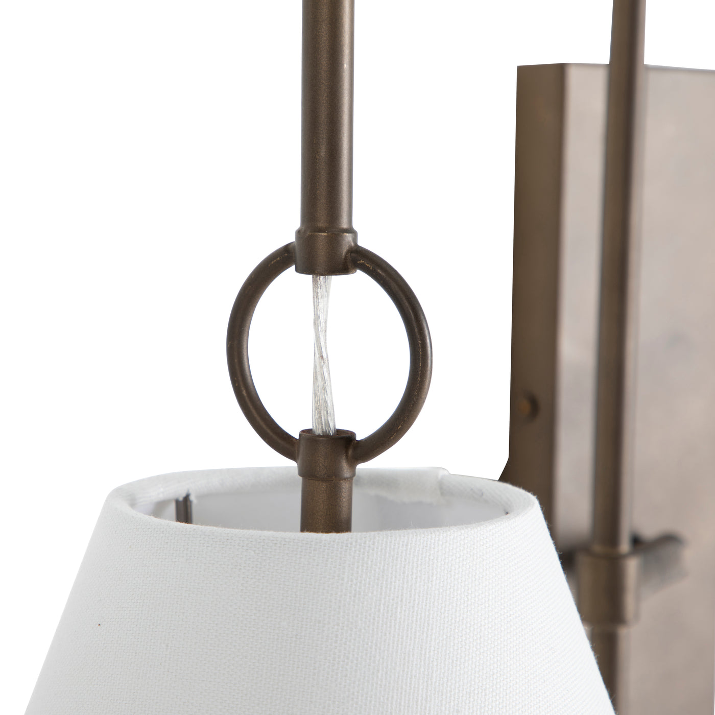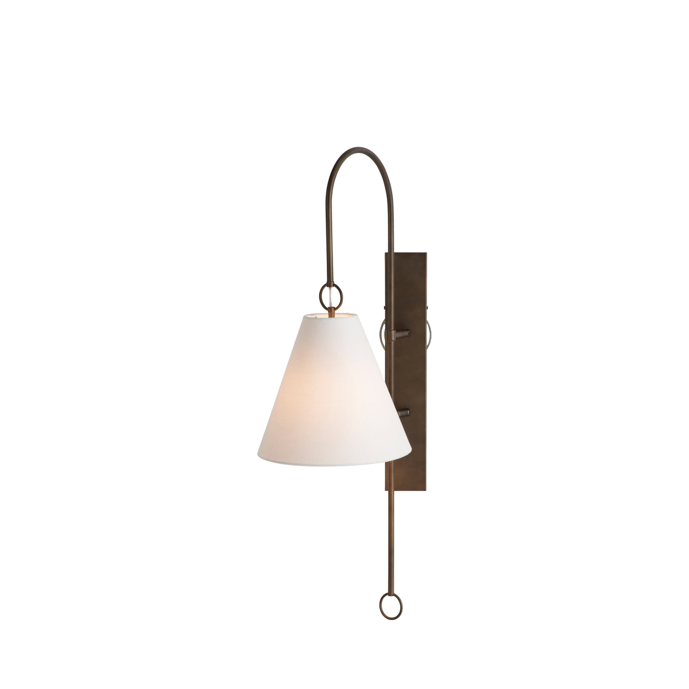 The Anniston Sconce exudes elegance with its sleek design and refined aesthetic. Minimalistic by design, the sconce quickly pivots to shine light wherever needed. Crafted in rubbed bronze, this sconce features a delicate hanging ring detail and a tapered feather white linen shade that casts a warm, inviting glow. Ideal for adding a touch of sophistication to any space. It also comes in a brass finish.