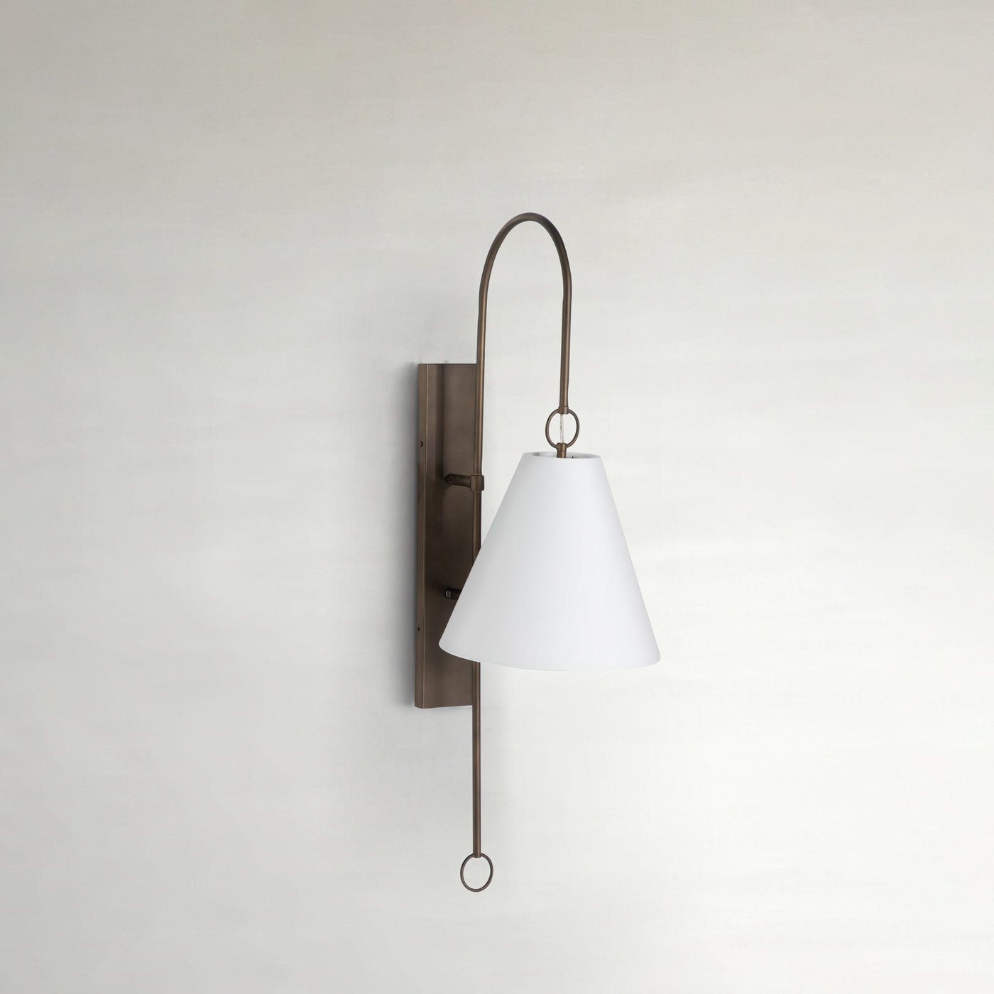 - Crafted in rubbed bronze with a delicate hanging ring detail that adds timeless character and subtle sophistication to the fixture