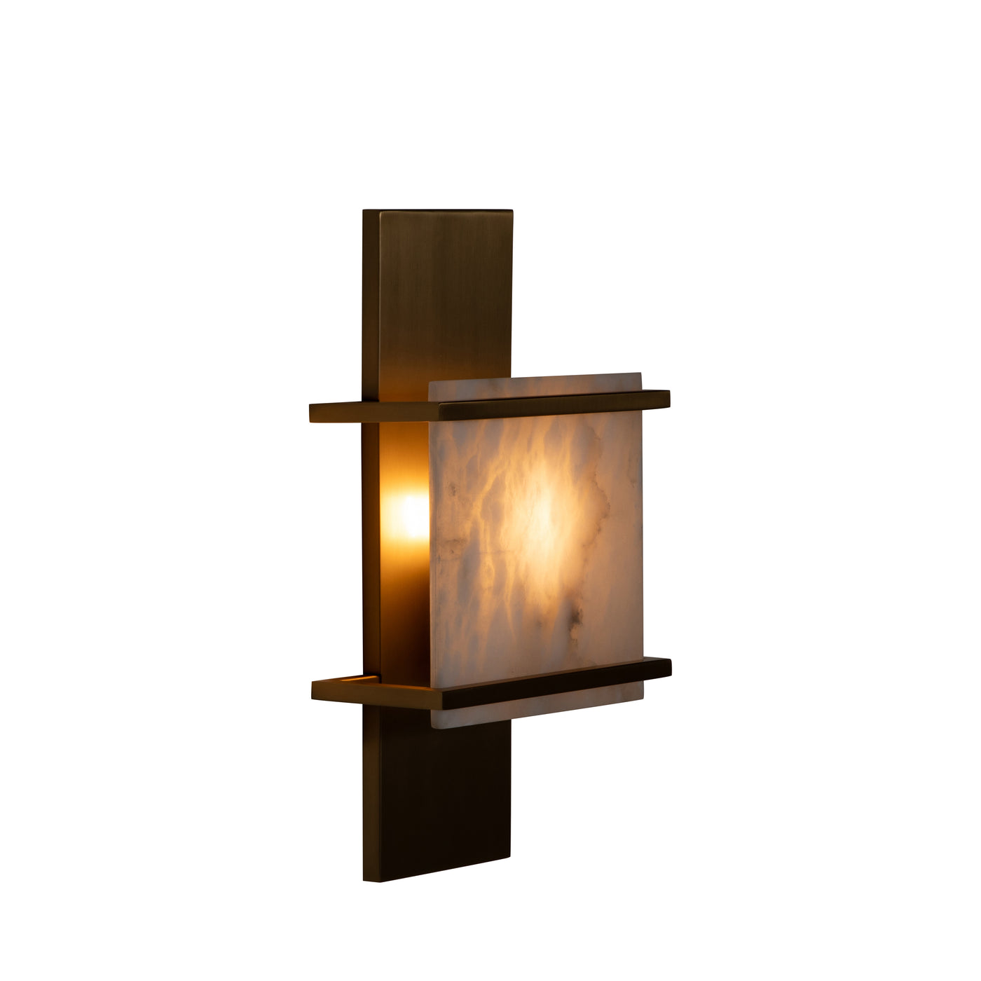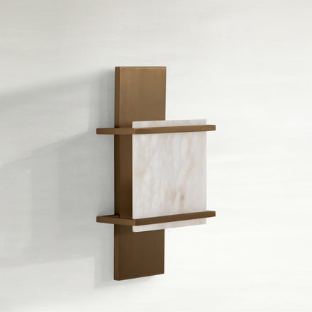 The Brooks Sconce is a stunning blend of modern design and timeless materials. Featuring a sleek antique brass finish, this wall sconce is paired with a natural alabaster panel that diffuses light beautifully, creating a warm and inviting ambiance. The geometric design and clean lines make it an elegant addition to hallways, bedrooms, or living spaces. The Brooks Sconce elevates any interior with its refined sophistication and functional artistry. It is also ADA compliant.
