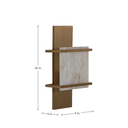 Brooks Alabaster Antique Brass Natural Wall Sconce - 4 in. D x 16 in. H