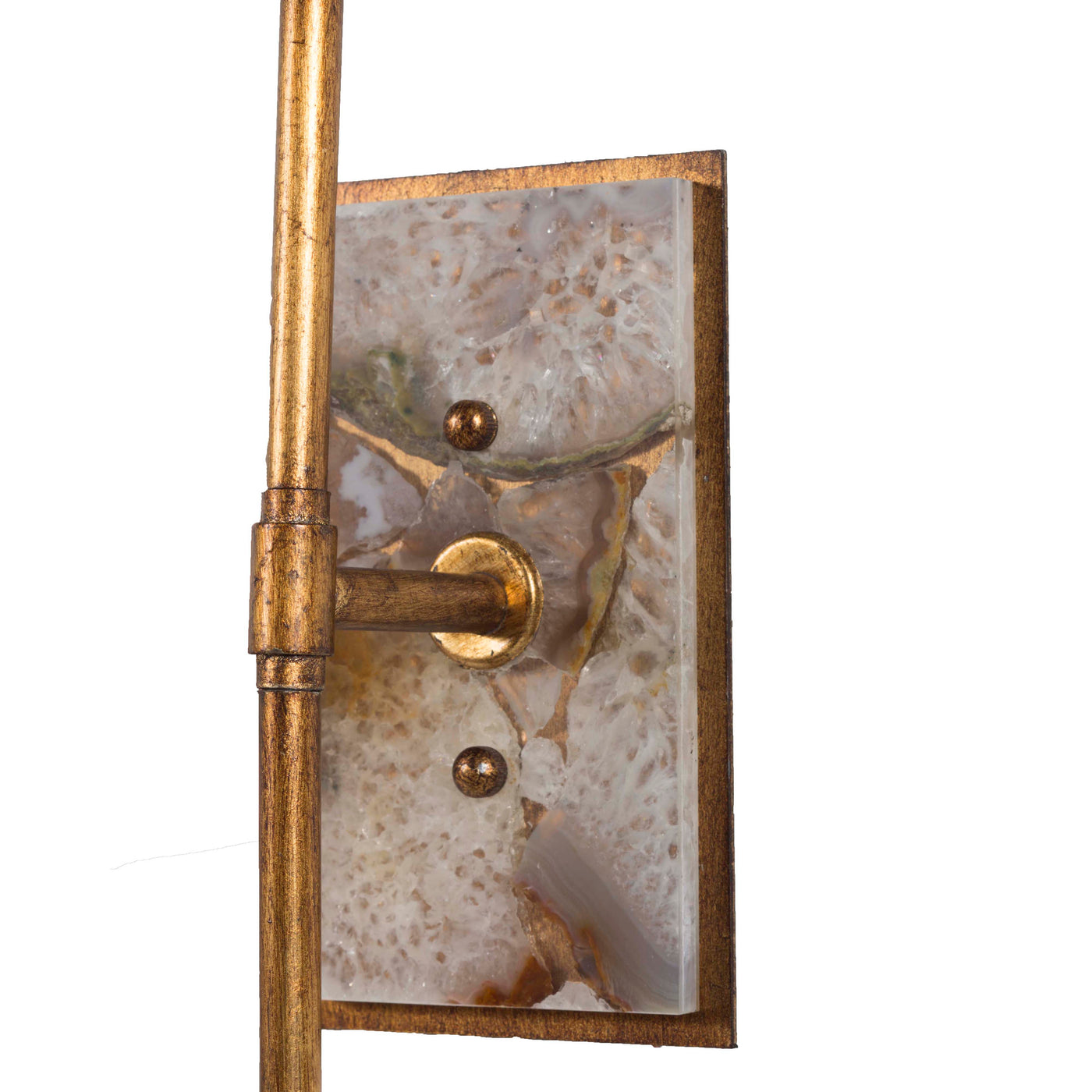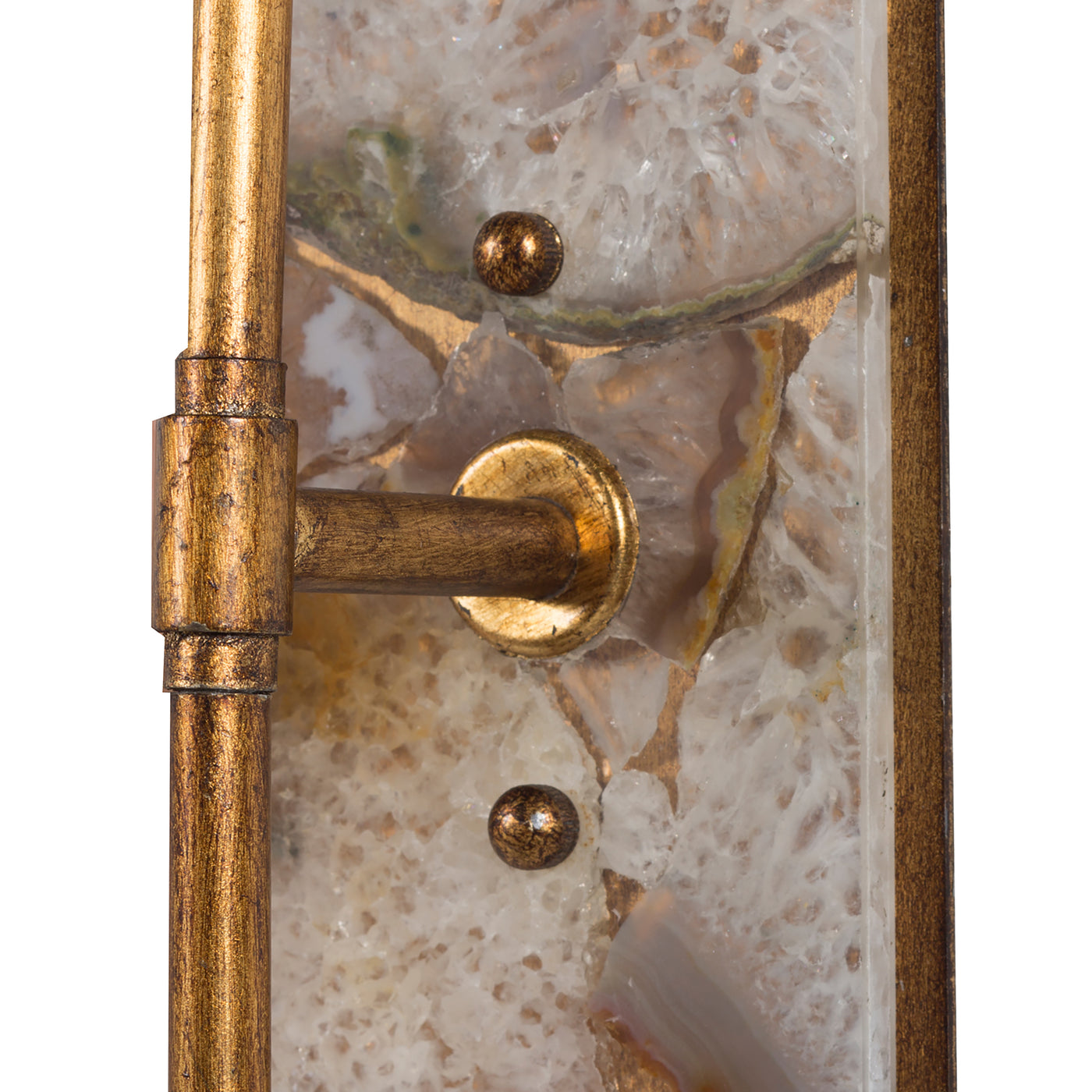 The Garnet Sconce combines elegance and contemporary style with its gilded gold finish and intricate detailing. The sconce features a beautifully crafted base that showcases the natural beauty of agate, renowned for its unique patterns and rich, vibrant colors. Its sleek design is complemented by a refined shade, creating a warm and inviting glow. Perfect for adding a touch of sophistication to any space, the Garnet Sconce is a versatile lighting solution that enhances both traditional and modern interiors.