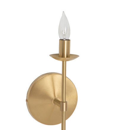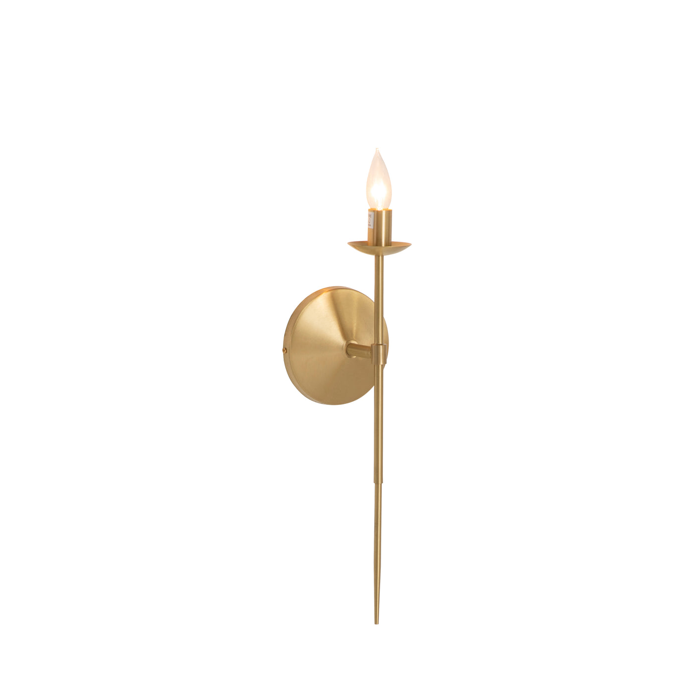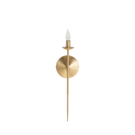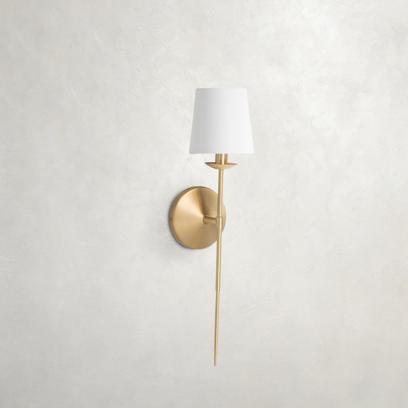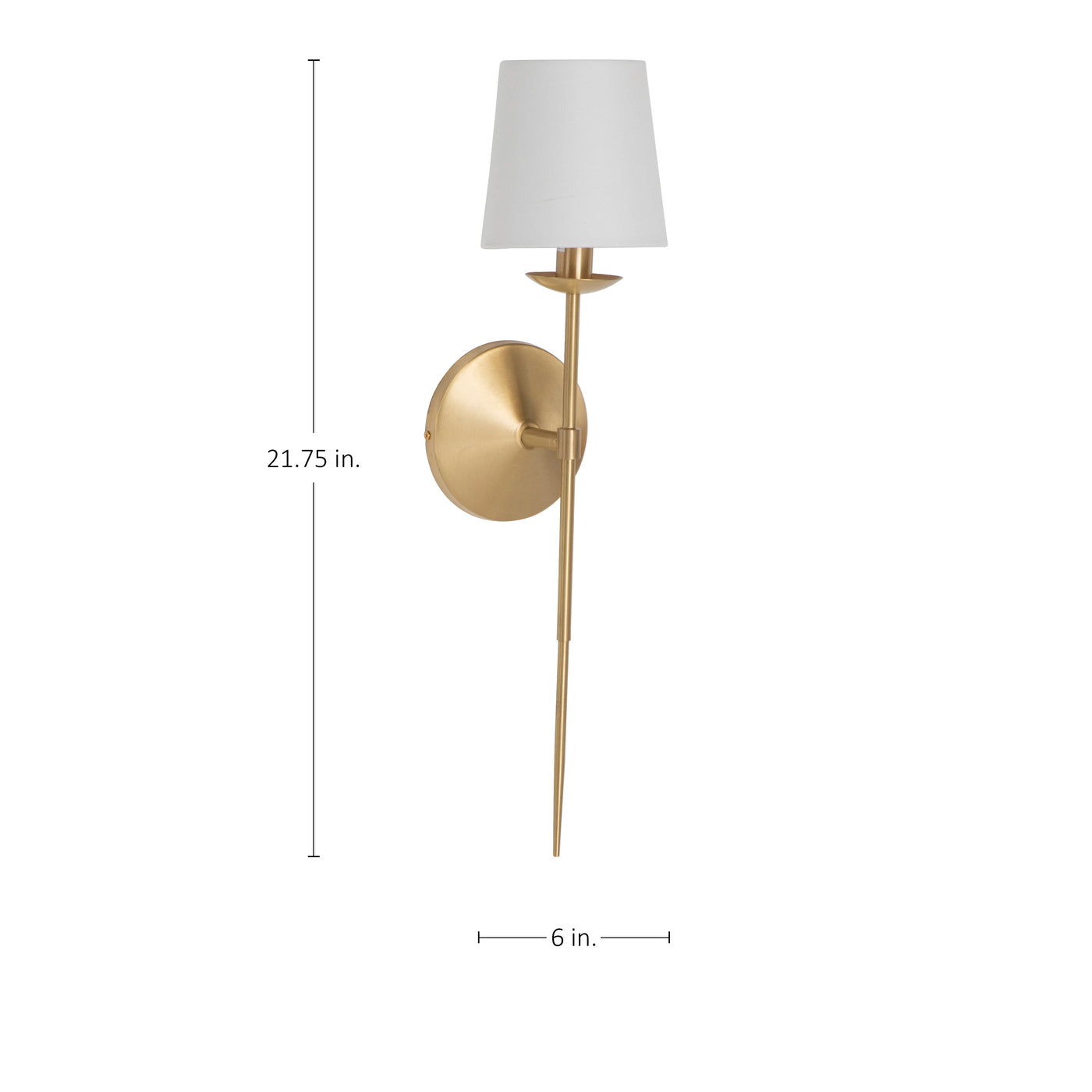 The Granville Candle Wall Sconce is a timeless piece that beautifully captures the essence of Parisian elegance from the early 1920s. With its slender torch arm extending gracefully from a modern conical backplate, this handcrafted sconce adds a touch of classic sophistication to any room. The gleaming brass finish enhances its vintage-inspired silhouette, while the white linen shade provides a soft, ambient glow, making it a versatile addition to both contemporary and traditional interiors. Perfect for flanking mirrors or art in the family great rooms or along the hallway, the Granville Candle Wall Sconce is designed to hardwire directly to the wall, ensuring a seamless and polished installation that elevates your space with effortless style.