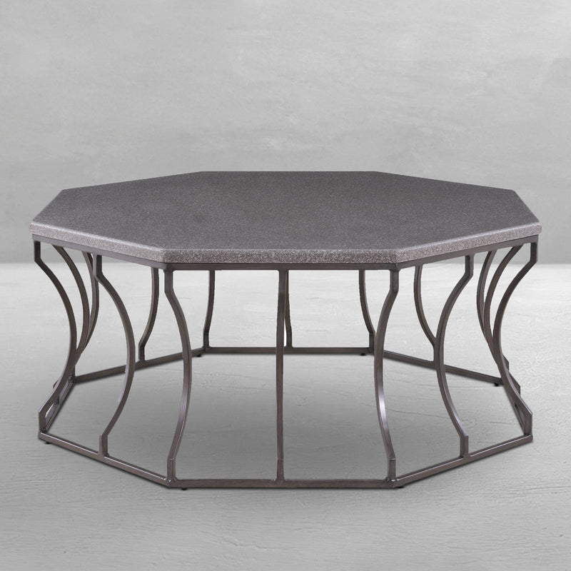 - Showcases an octagonal shape with dynamically curved legs, blending mid-century modern and contemporary design elements