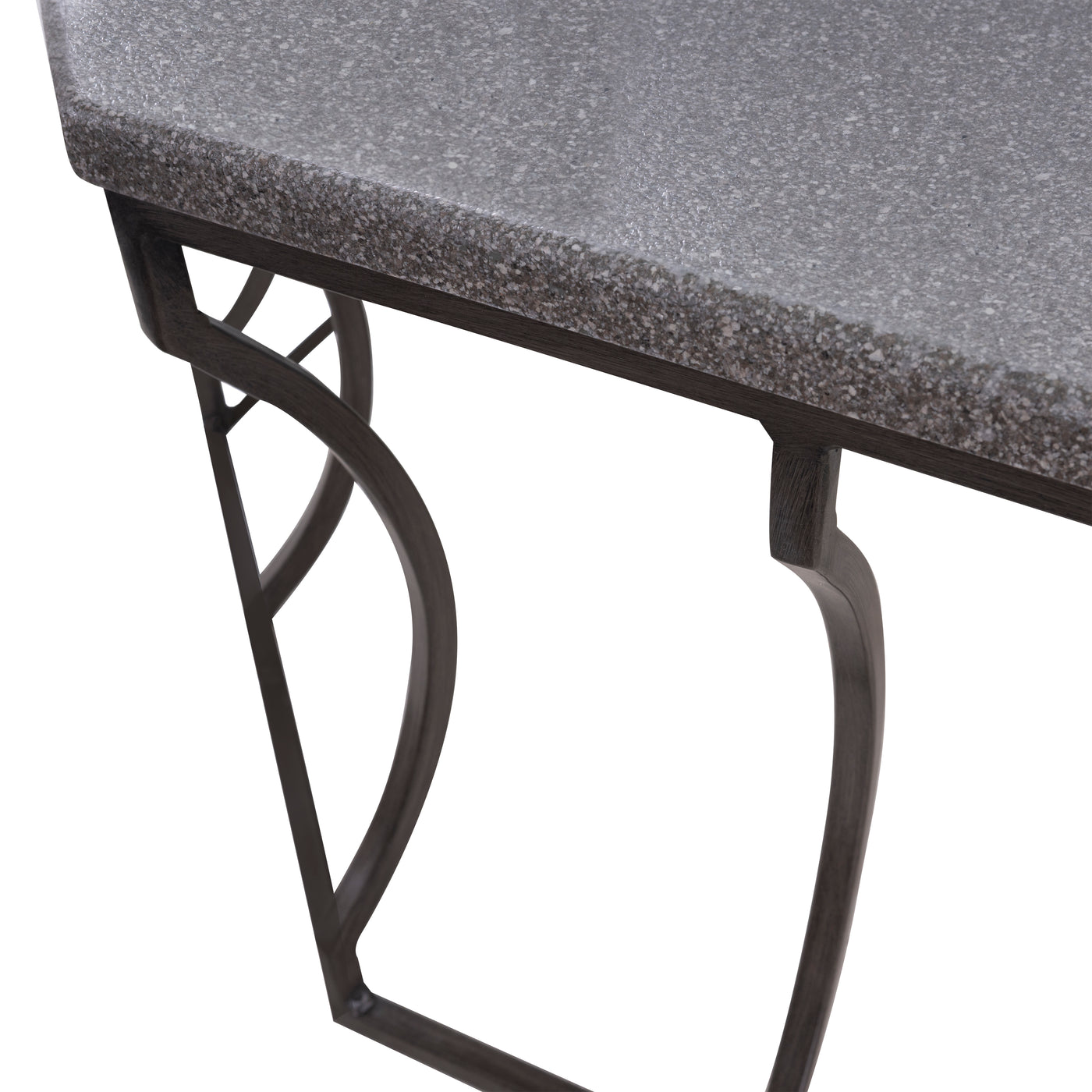 - Faux stone with wrought iron frame offers durability and a refined aesthetic