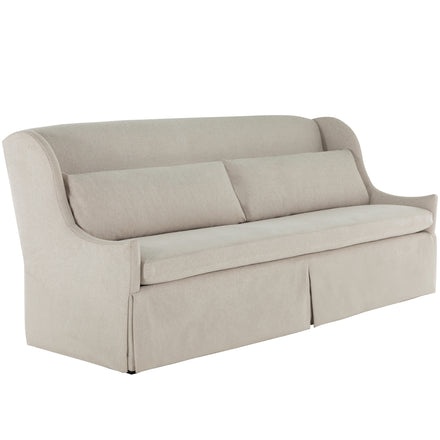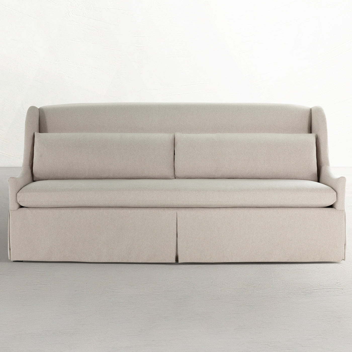 The Bellview Sofa, proudly made in North Carolina, features a high back with elegantly rolled, narrow arms and a unique low-back cushion design, offering unparalleled comfort. It presents a tailored appearance with its one-piece skirted frame. The Bellview Sofa comes in a single long bench seat with a tight back and two shorter elongated back cushions. Notably, it boasts the highest back in our collection, making it a standout choice for both style and support.