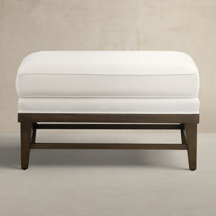 The perfect partner with the Bev Lounge Chair, the Bev Ottoman features the same sumptuous cushioning and wooden base in a rectangular silhouette. Its generous size allows it to multifunction as comfortable extra seating as well. Visit one of our retail stores to see our full assortment of premium fabrics.