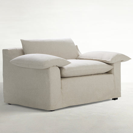 - Loose pillow top arms add a soft, relaxed feel to the design.